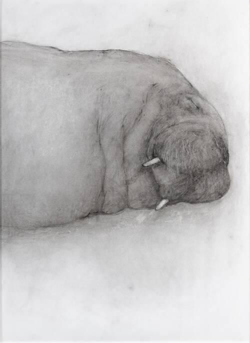 I mitt siste prosjekt, tegner jeg store (120x90 cm) kulltegninger av dyr som sover og skriver tilhørende tekster.